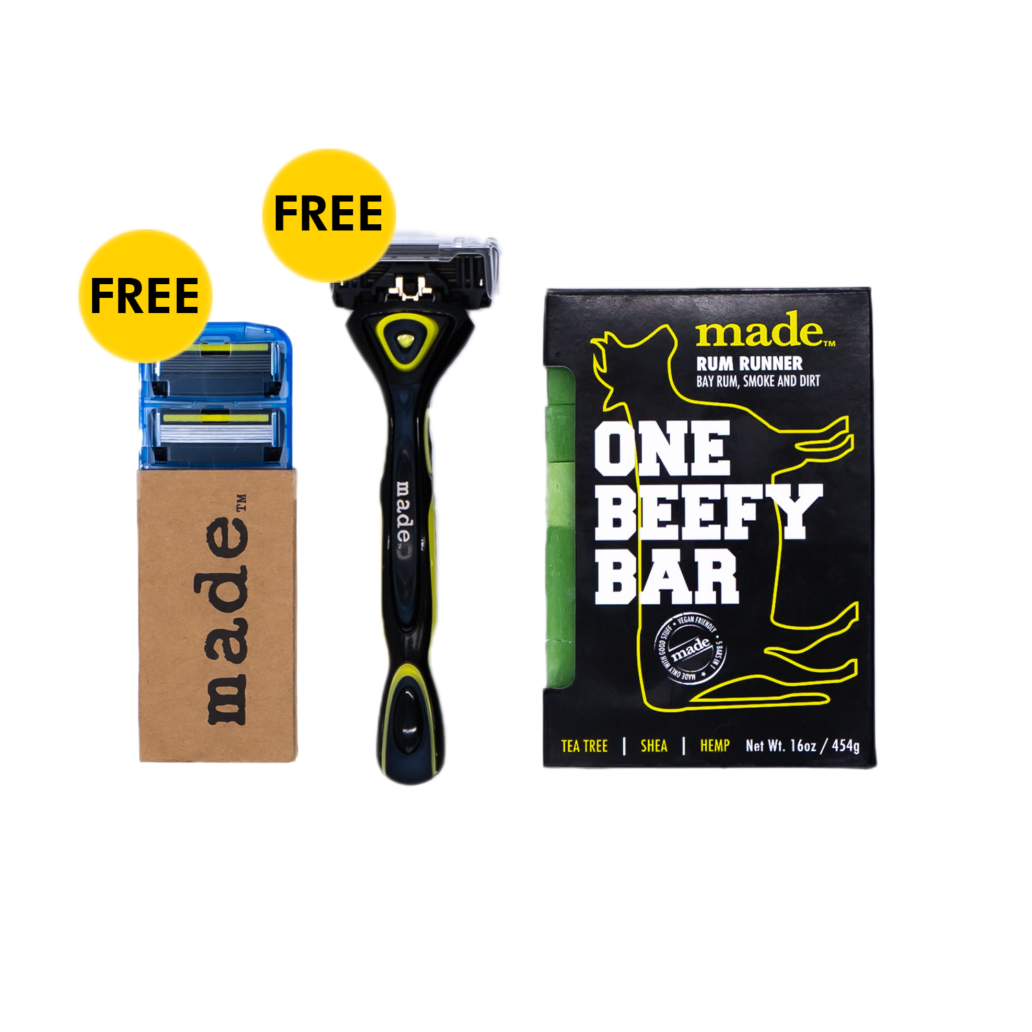 Enhance your routine with our men's grooming subscription and receive a FREE razor and a 4-pack of blades with every shipment!